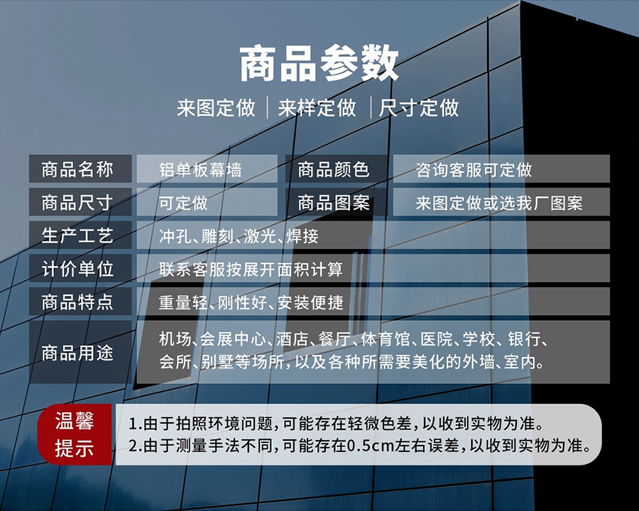 | 產(chǎn)品種類 | 鋁單板/彩涂鋁單板/鋁板/彩鋁單板/壓花鋁板/鋁單板 | ||